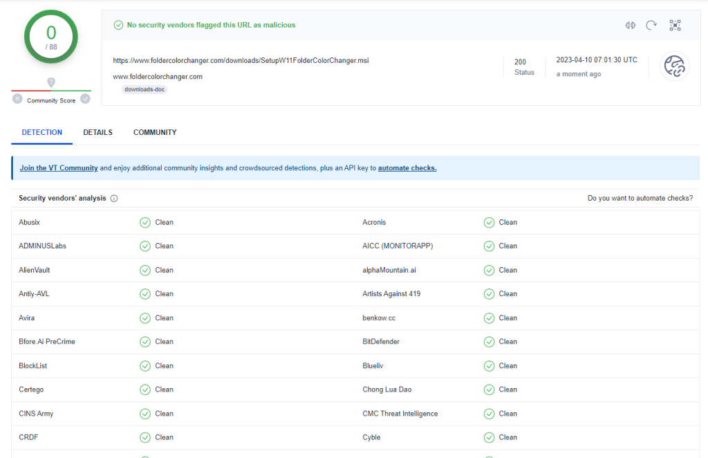 How do I know this app is safe? You can screen our download link at VirusTotal. Here’s an extract of our screening as of 10 April 2023.