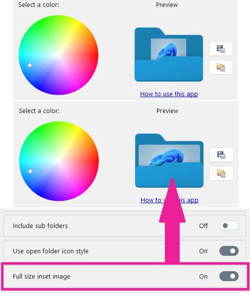 You can now use the new “Full size inset image” setting to choose between the standard inset image (ideal for icons, e.g. document types) and full size inset image (ideal for image folders e.g. photos, wallpapers, etc.).