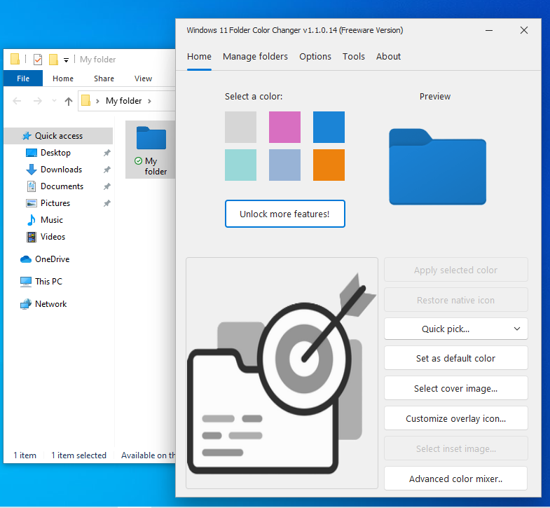 A hearty welcome to all the new Windows 10 users! Starting with version 1.1.0.14, Windows 11 Folder Color Changer also runs on Windows 10.